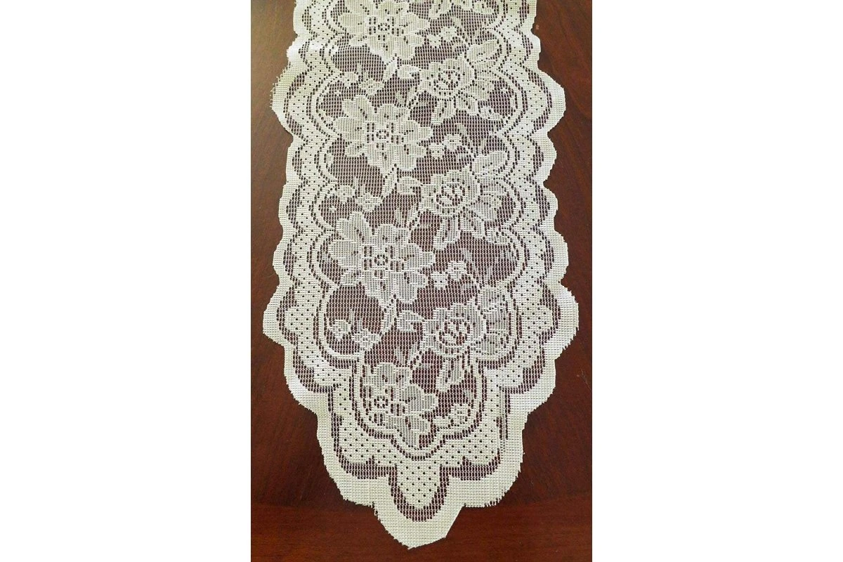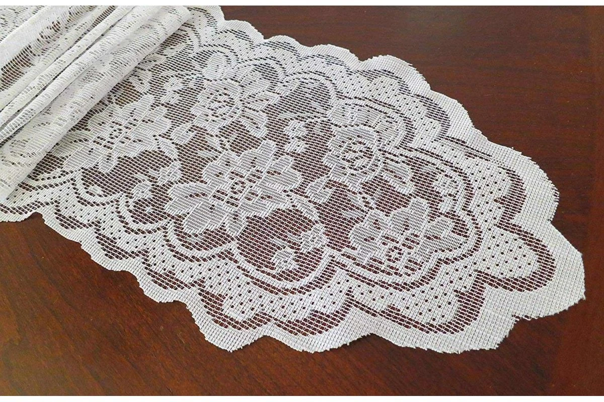 Goldstream Point lace table runners feature a unique floral design. The design is embedded in the material, not placed on top. This helps ensure that the table runner lasts through repeated use.