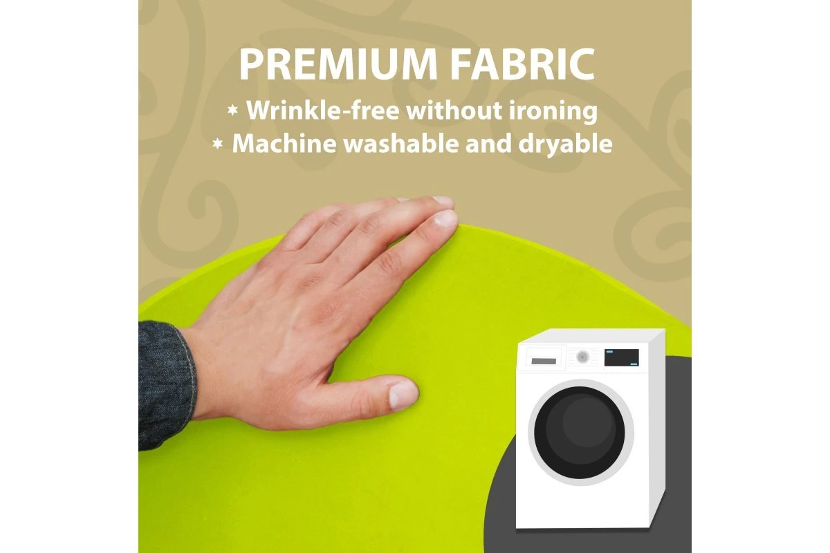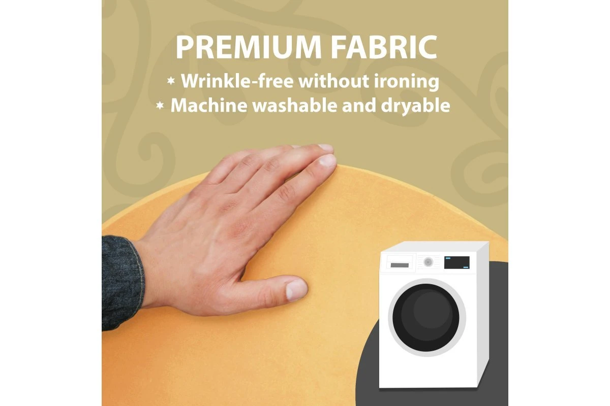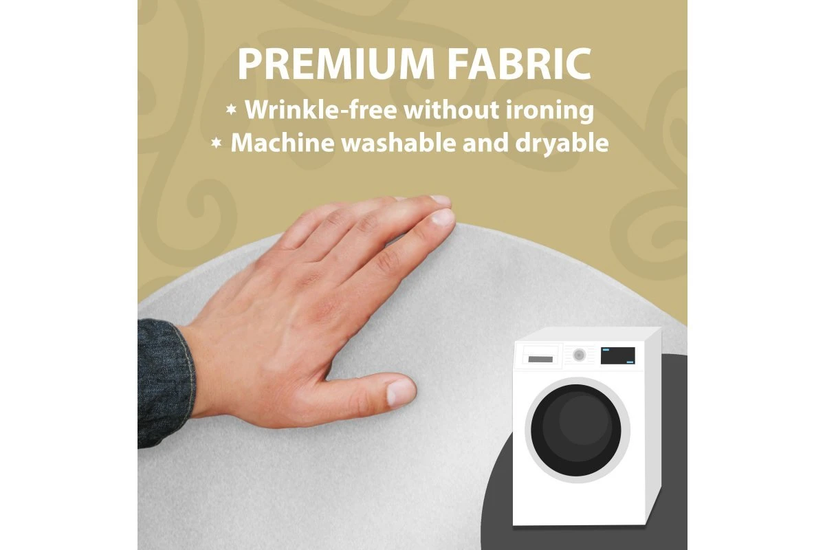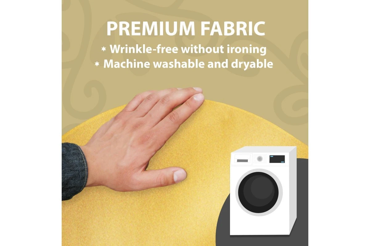 Our tablecloths are wrinkle resistant so there is no ironing required. When you want to wash them, you can toss them into your washing machine and dryer.