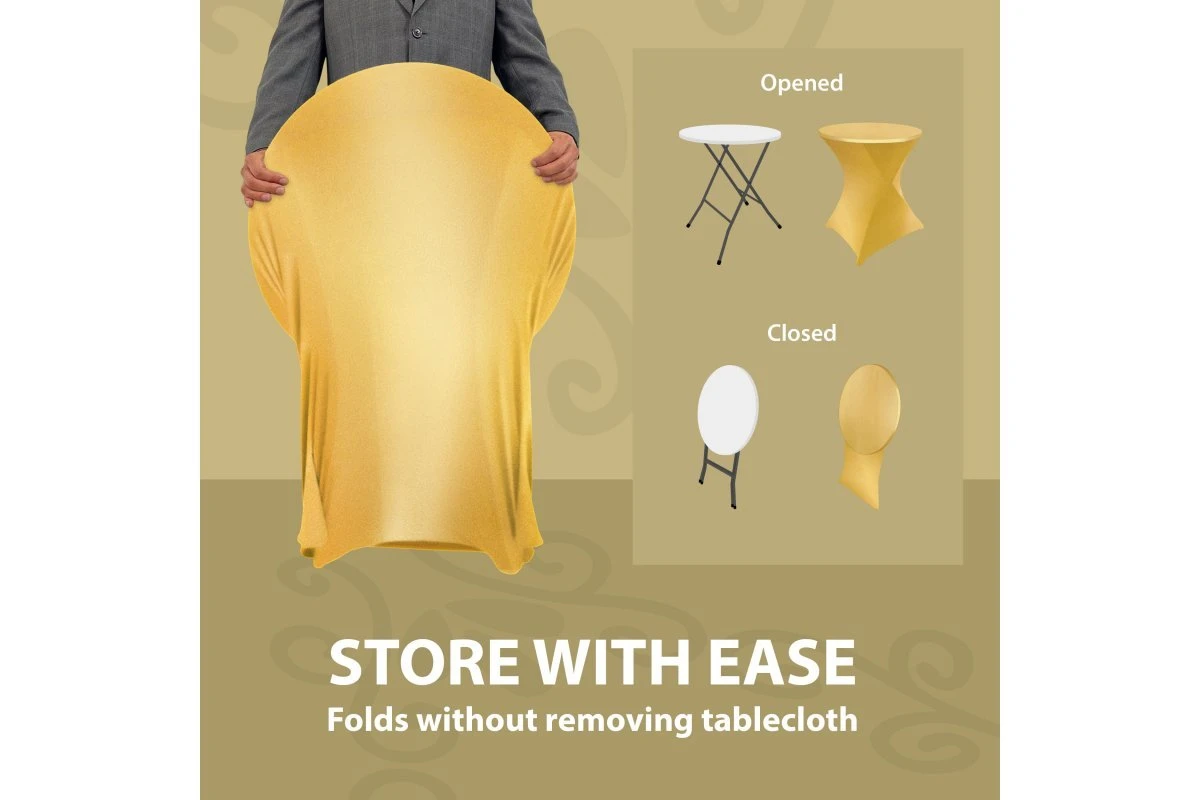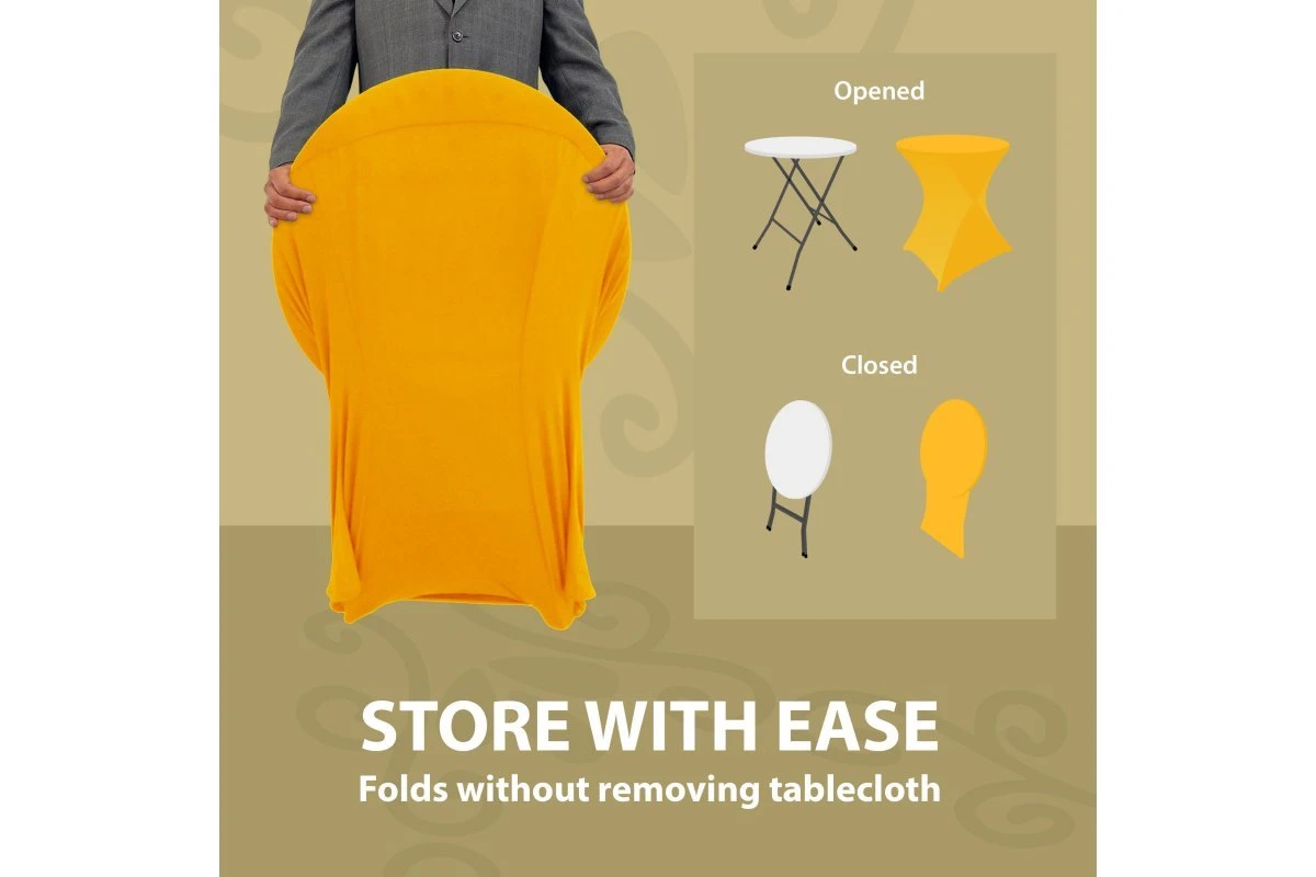 When opening your table, some spandex tablecloths will cause your folding table to fold closed and not stay open! We have eliminated this issue so you don't have to clamp or tape your table.