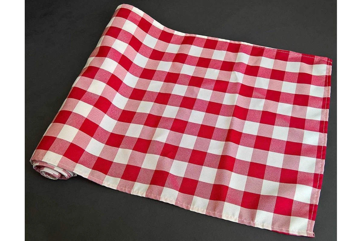 Our checkered table runner is made with finished edges and our durable polyester for maximum durability.