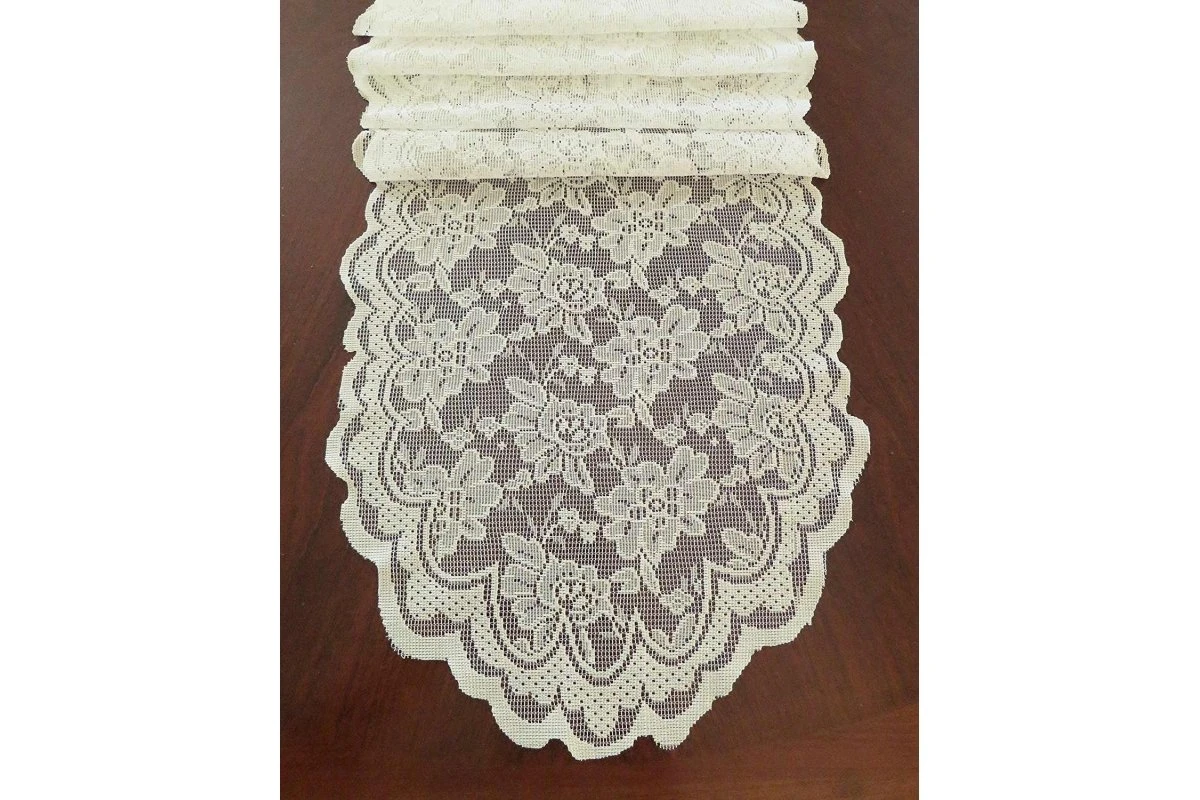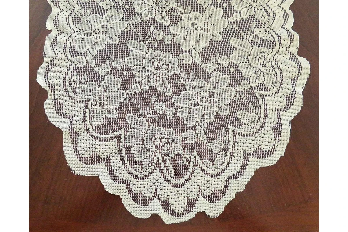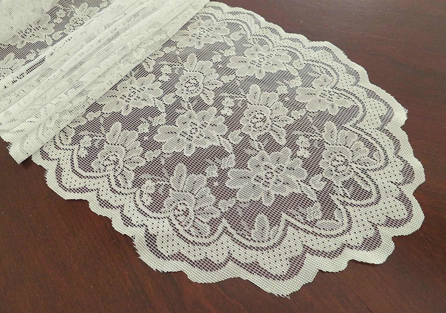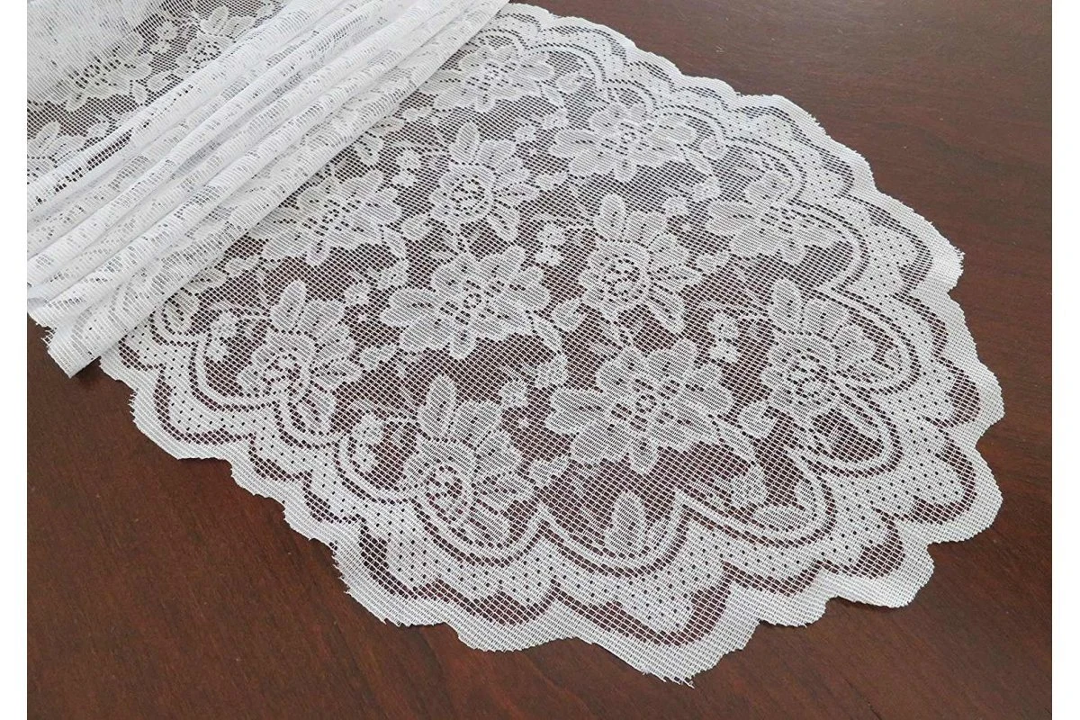 Goldstream Point lace table runners feature a unique floral design. The design is embedded in the material, not placed on top. This helps ensure that the table runner lasts through repeated use.